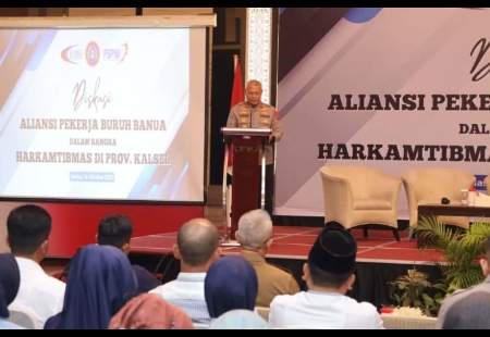 Kapolda Kalsel Irjen Pol Rosyanto Yudha Hermawan saat memberikan sambutan dalam Diskusi Aliansi Pekerja Buruh Banua terkait Harkamtibmas di Banjarmasin, Selasa (14/10/2025). Yunita Wijayanti 14 Okt 2025 Baca Lengkap