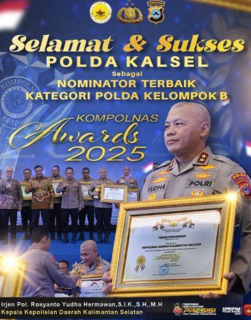 Polda Kalimantan Selatan kembali menorehkan prestasi membanggakan dengan meraih penghargaan sebagai Nominator Terbaik dalam kategori Polda Kelompok B pada Kompolnas Awards 2025. Penghargaan ini merupakan pengakuan atas kerja keras dan dedikasi seluruh jajaran Polda Kalsel dalam menjaga keamanan dan ketertiban masyarakat di wilayah Kalimantan Selatan. Melalui berbagai inovasi dan program yang dilaksanakan, Polda Kalsel berhasil memberikan pelayanan yang optimal serta meningkatkan kepercayaan publik terhadap institusi kepolisian.